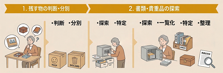 - 生前整理:物・家財・生活環境の整理(片付けの実務が中心)