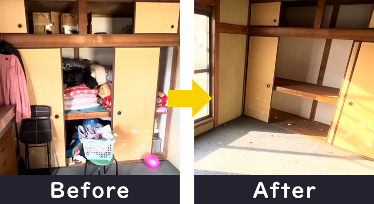 押し入れ、納戸に荷物が詰まっていることが多いパターン。目安は20万〜70万円程度。写真アルバムや重要書類など「捨てられない物」が混在していると、仕分け時間が増えるため費用が上がりやすいです。遠方在住で立ち会いが難しい場合は、写真報告や鍵預かり対応の可否も重要になります。